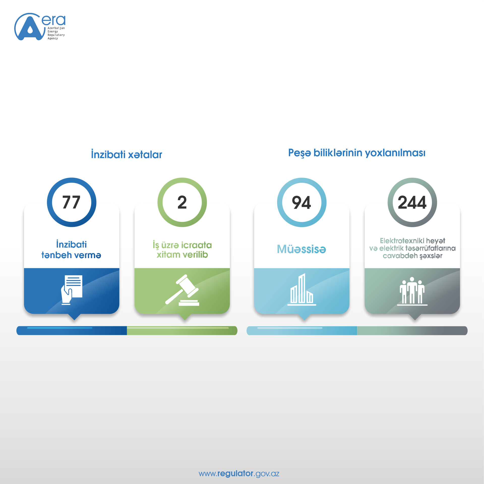 Müraciətlərdən 2378-i Agentlik tərəfindən araşdırılıb və cavablandırılıb (42 müraciət müvafiq qaydada baxılması və tədbir görülməsi üçün aidiyyəti quruma göndərilib), 7 müraciət Energetika Nazirliyi ilə müştərək icra olunub, 700 müraciət hazırda baxılma prosesindədir, 464 məlumat xarakterli müraciətdən 238-i qaldırılan problemlərin həlli ilə bağlı təşəkkür məktubu olub.