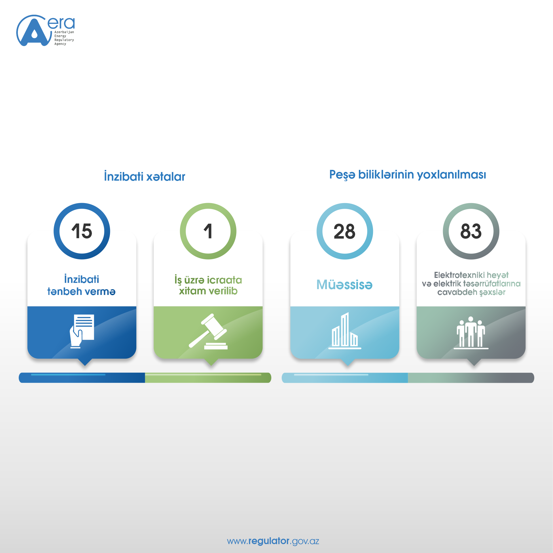 Agentliyin səlahiyyətlərinə aid olan Azərbaycan Respublikası İnzibati Xətalar Məcəlləsinin müvafiq maddələri üzrə 16 inzibati xəta haqqında işə baxılıb, onlardan 15 iş üzrə inzibati tənbeh vermə haqqında qərar, 1 iş üzrə isə icraata xitam verilməsi barədə qərar qəbul olunub.