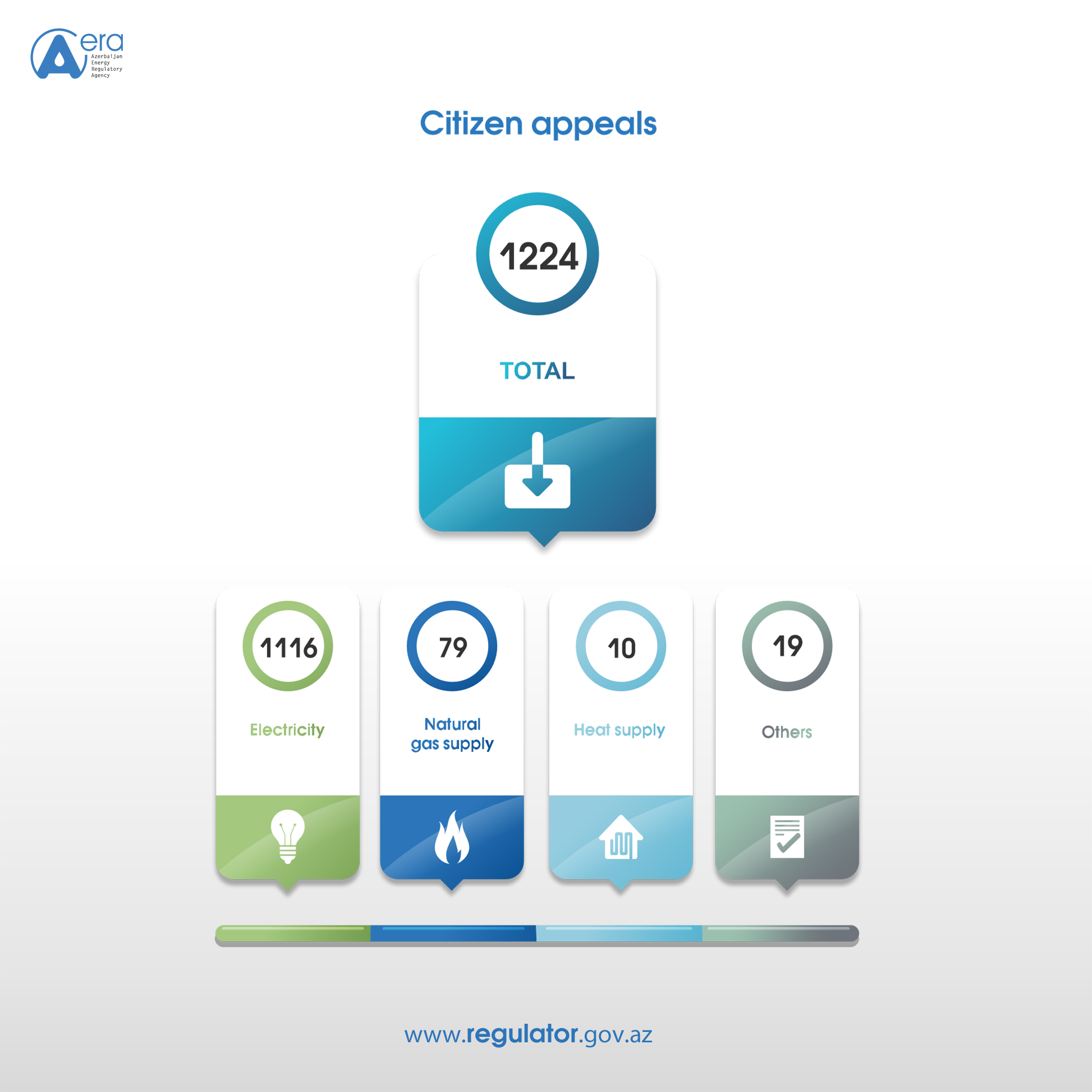 In July 2025, the Azerbaijan Energy Regulatory Agency (AERA) received a total of 1,224 appeals, both directly and through the Ministry of Energy, concerning consumer rights protection, the electricity and natural gas supply, and other matters. Of these appeals, 1,116 were related to electricity supply, including 167 of informational nature. There were 79 appeals regarding natural gas supply, with 19 of them being informational. The Agency received a total of 10 appeals regarding heat supply, including 6 of informational nature. Meanwhile, 19 appeals concerned other issues, with 1 of them being informational.